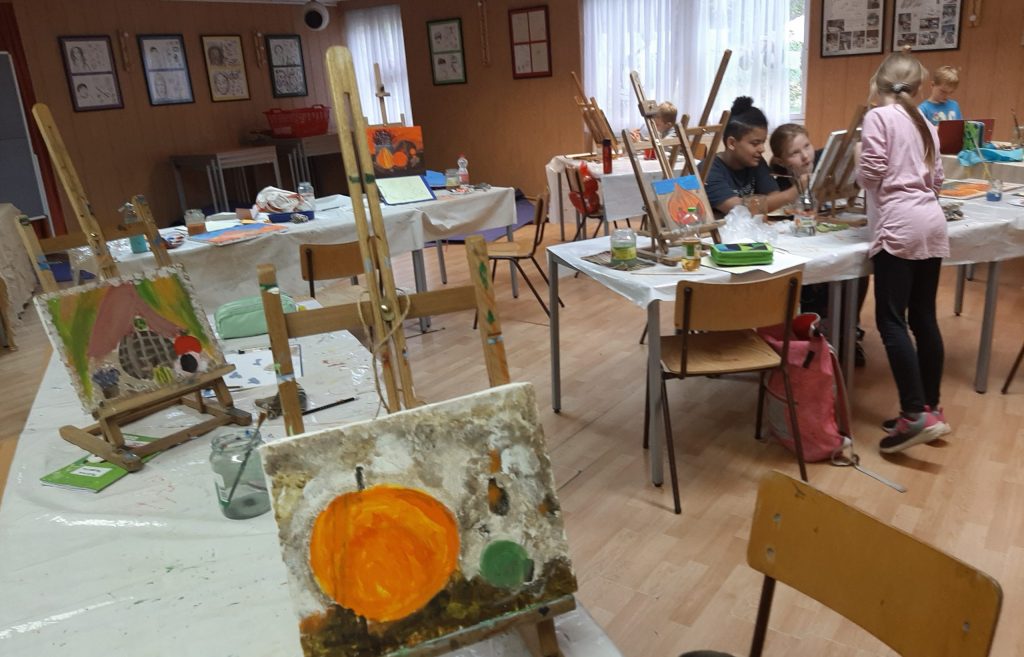 In der ersten Woche der Herbstferien – vom 06. bis 10.Oktober 2025 – treffen wir uns wieder zum gemeinsamen Malen, Zeichnen und Gestalten! Von Montag bis Freitag verwandeln wir die Station von 10 bis 15 Uhr in unsere Kunstwerkstatt. Wir stellen Staffeleien auf und bringen Herbstfarben auf`s Papier. Am letzten Tag endet die bunte Woche mit einer kleinen Ausstellung.
